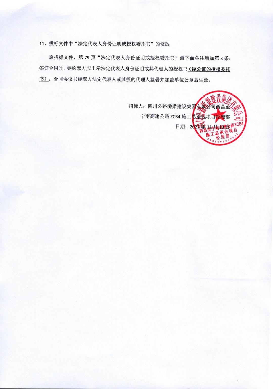 西昌至寧南高速公路ZCB4施工總承包項目先期開工點工程勞務合作工程招標文件補遺書(第03號)