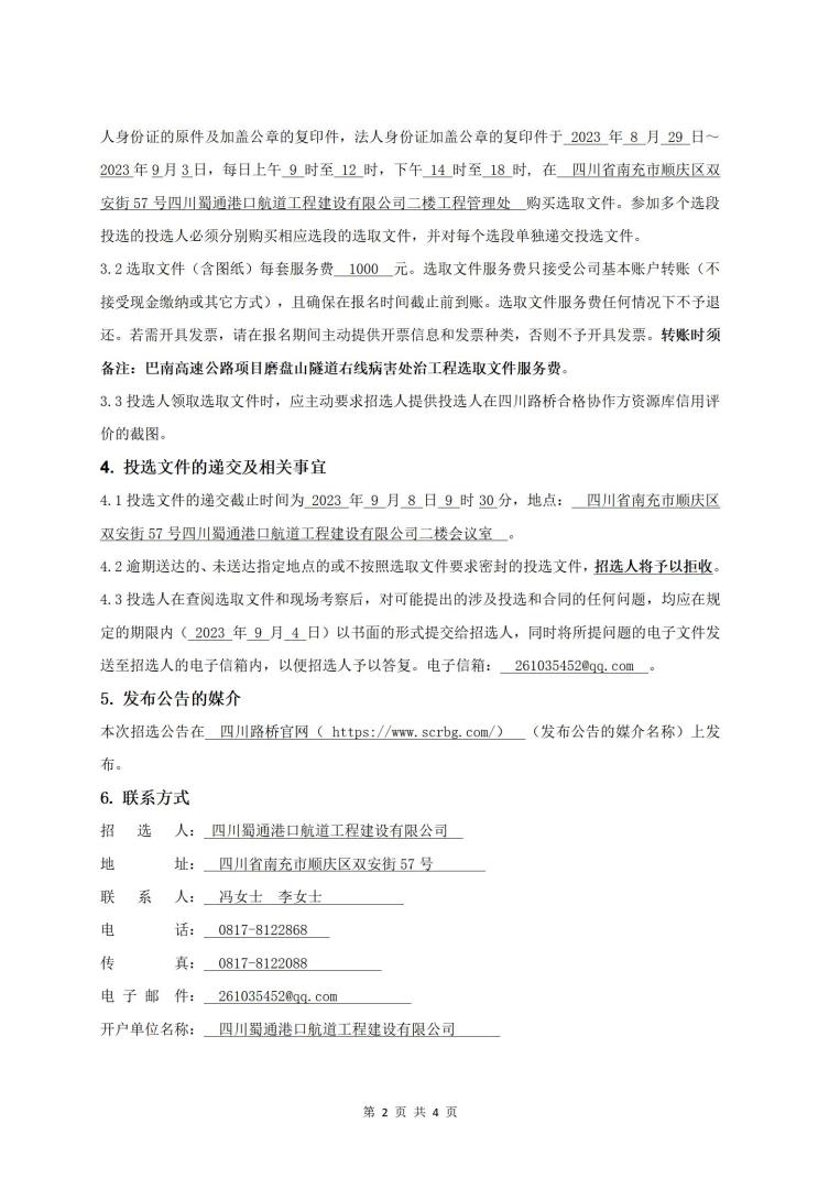 四川巴南高速公路磨盤山隧道右線病害處治勞務(wù)合作工程招選公告