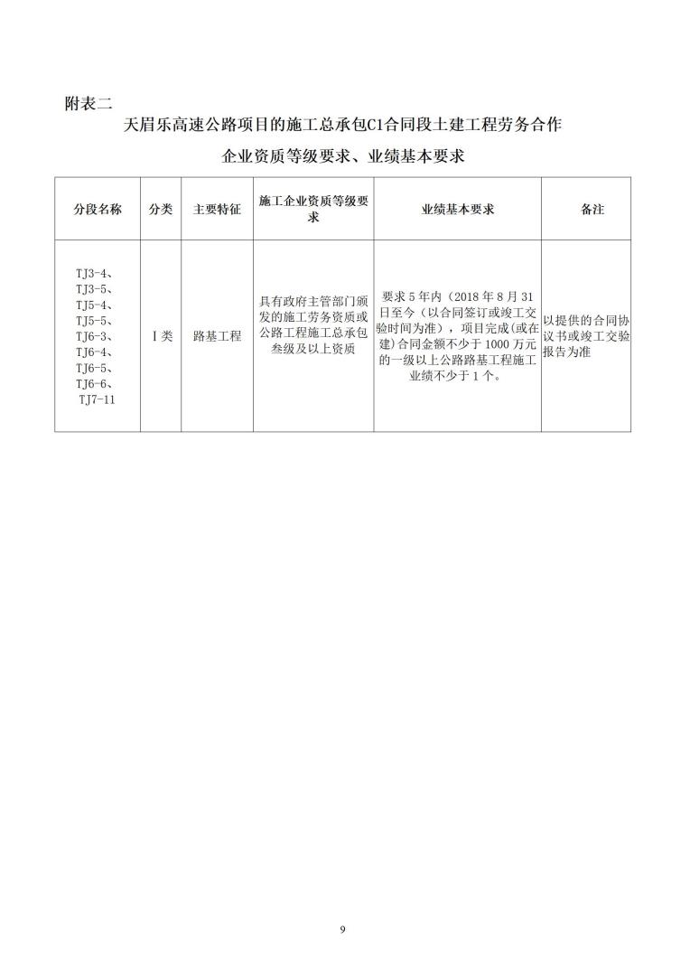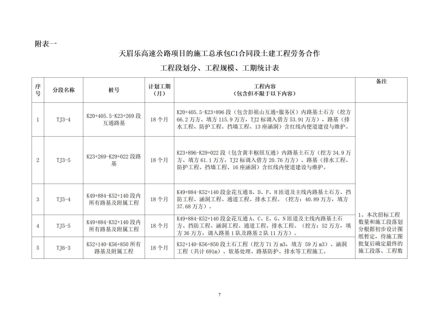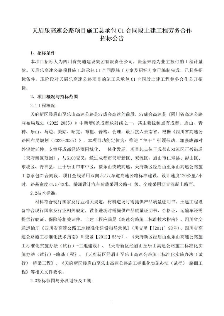 天眉樂高速公路項(xiàng)目施工總承包C1合同段土建工程勞務(wù)合作招標(biāo)公告