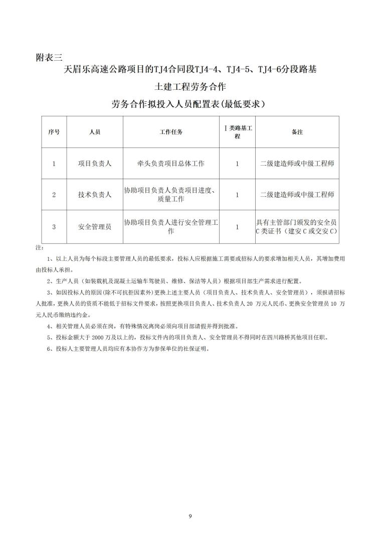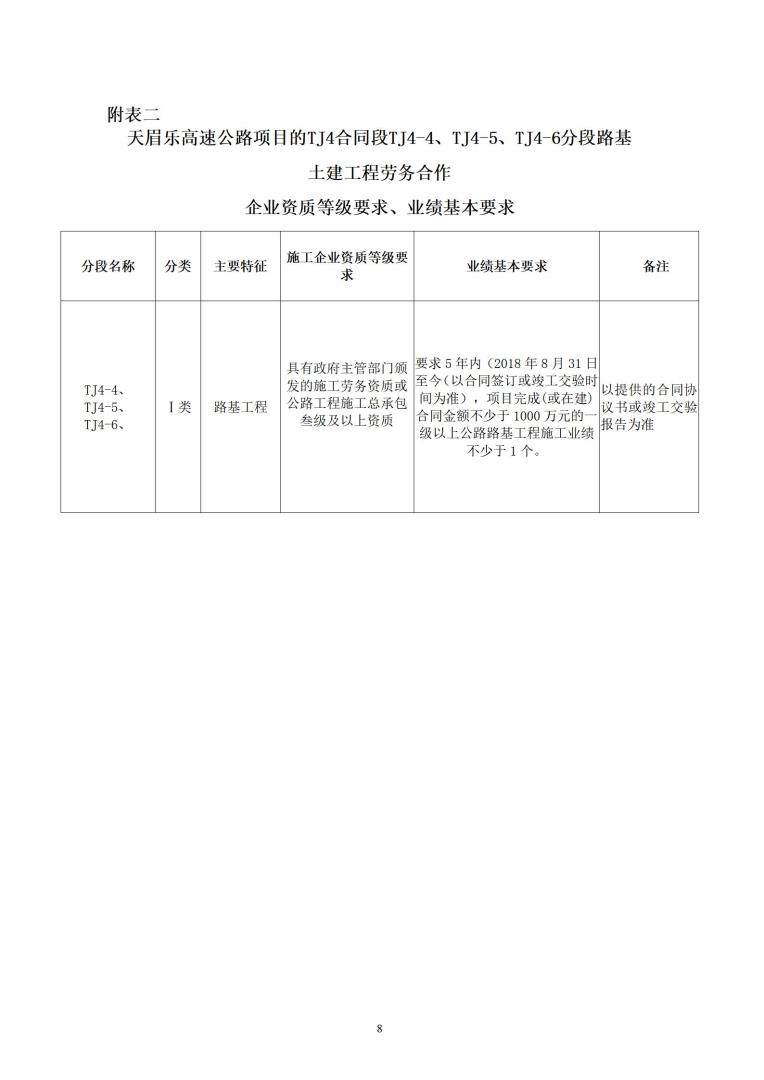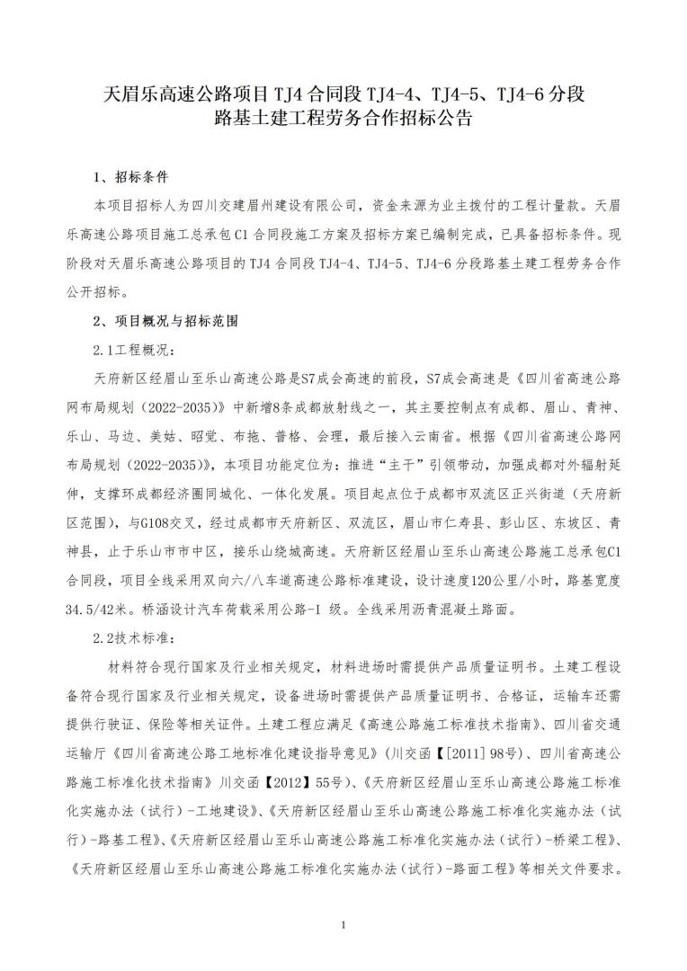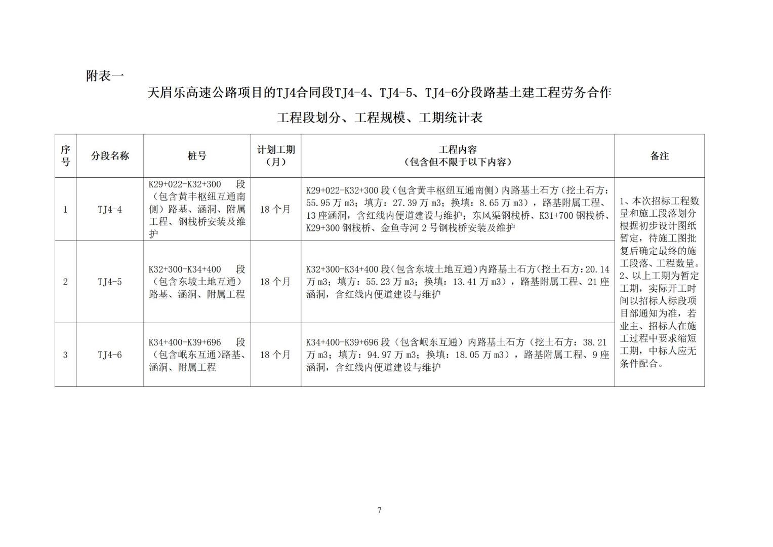 天眉樂高速公路項目TJ4合同段TJ4-4、TJ4-5、TJ4-6分段路基土建工程勞務(wù)合作招標(biāo)公告